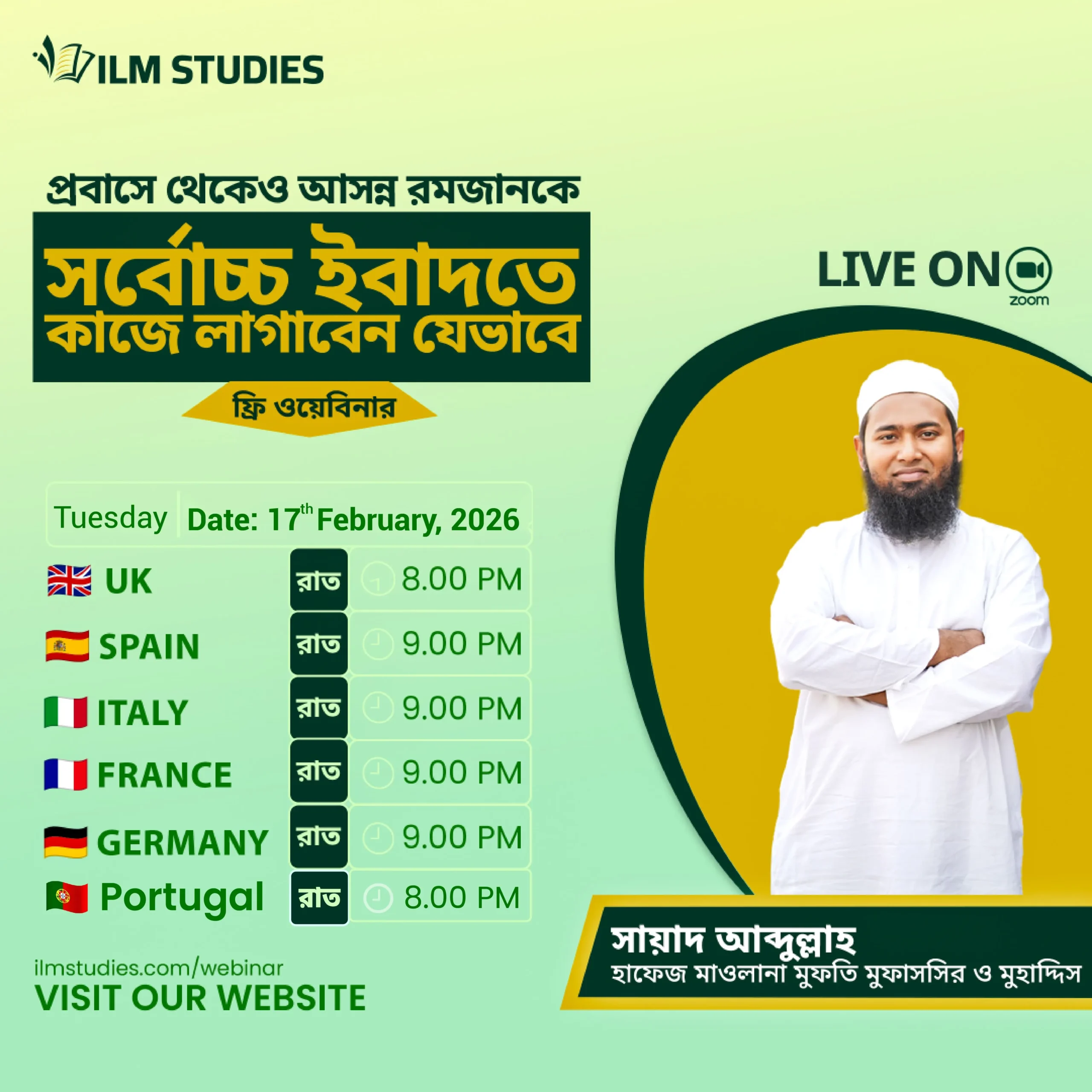 রমজানের গুরুত্বপূর্ণ মাসআলা–মাসায়েল ও সঠিক আমলের পূর্ণ দিকনির্দেশনা ফ্রি লাইভ ওয়েবিনার | সরাসরি প্রশ্ন করার সুযোগ
